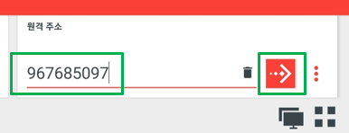 원격 주소 창에 컴퓨터의 9자리 번호를 입력하고 화살표 버튼을 누릅니다.