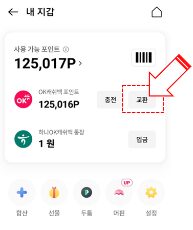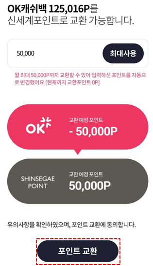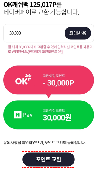 (OK캐쉬백으로 교환은 다른 포인트를 OK캐쉬백으로 끌고 오는 겁니다. 주의하세요.)